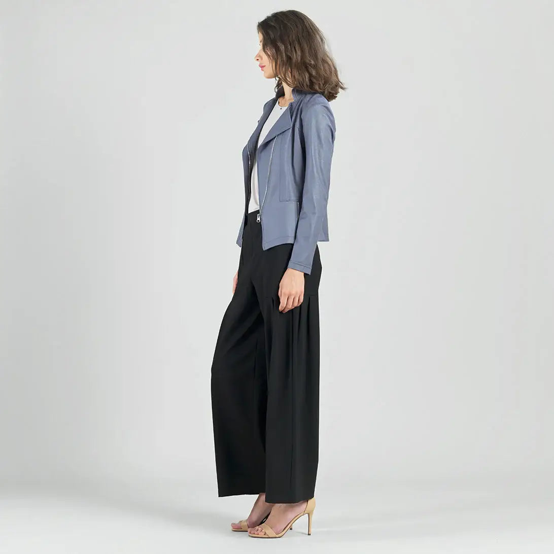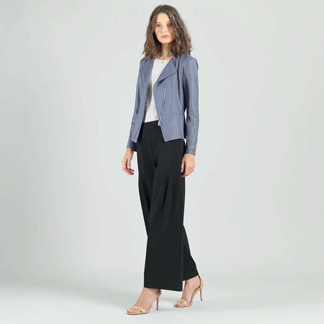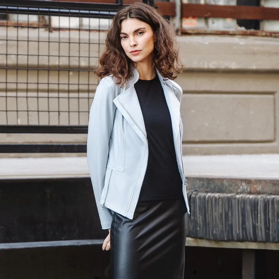 Oprah's favorite List! No need to click your heels, this Liquid Leather Signature Jacket is ready to find a home with you! Made from our beautiful signature stretch knit, extremely lightweight soft "lambskin feel" fabric with a soft matte finish. This jacket features a notched lapel with an upright collar, long sleeves, silver asymmetrical zip closure, faux pocket zipper slits as well as complimentary detailed front and backstitching.