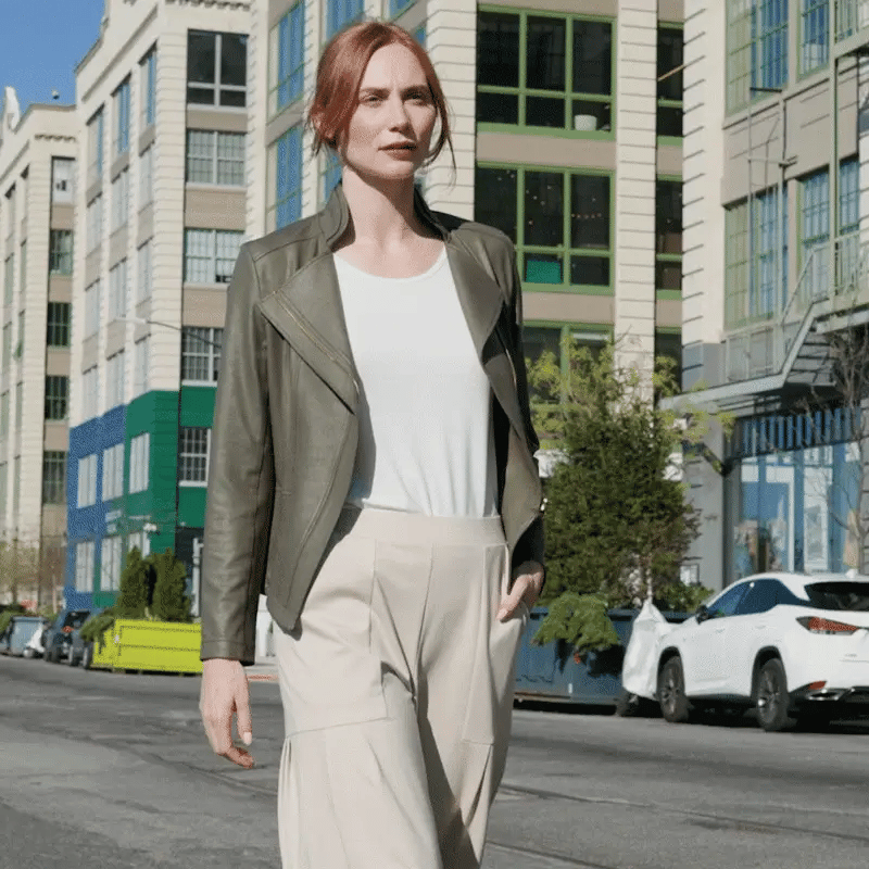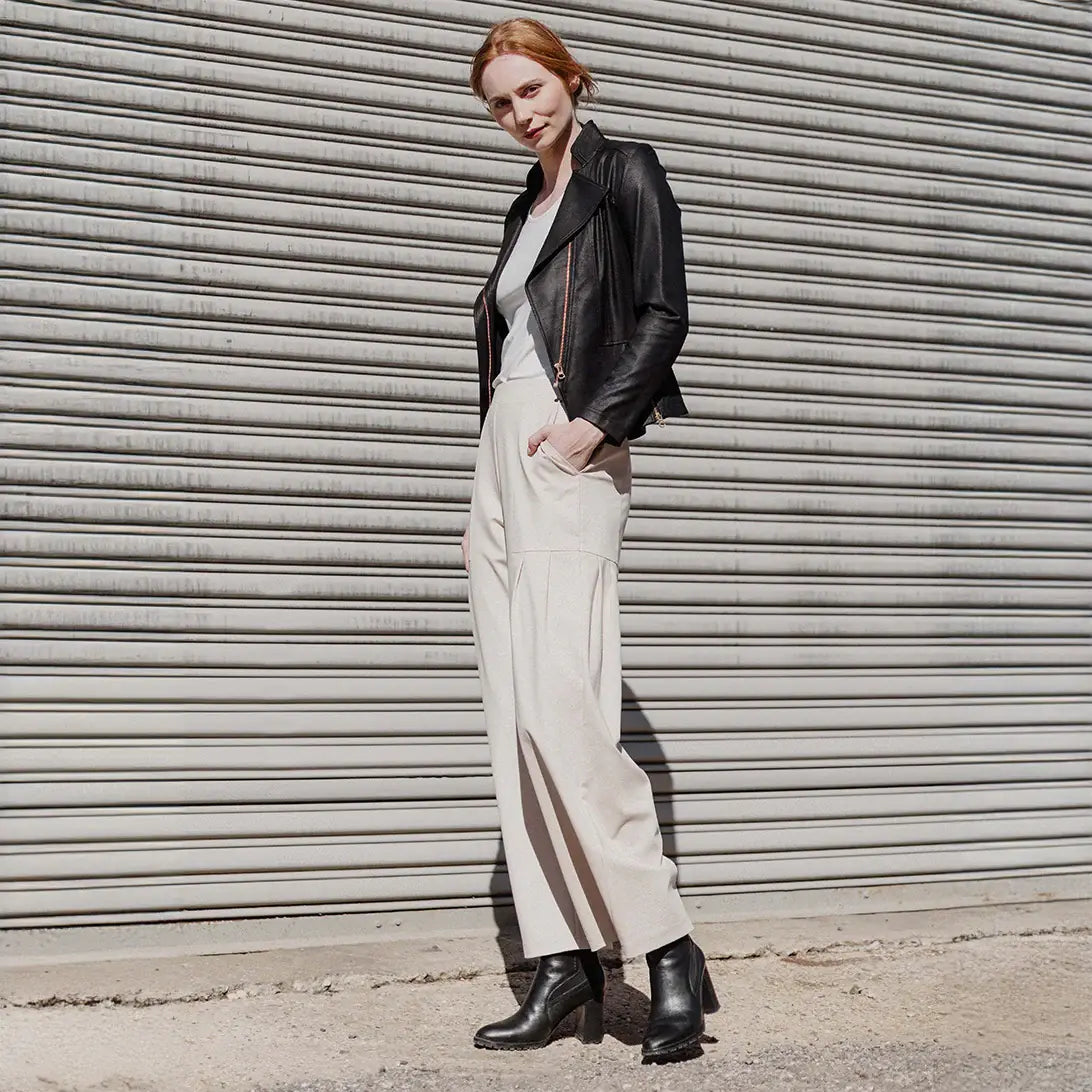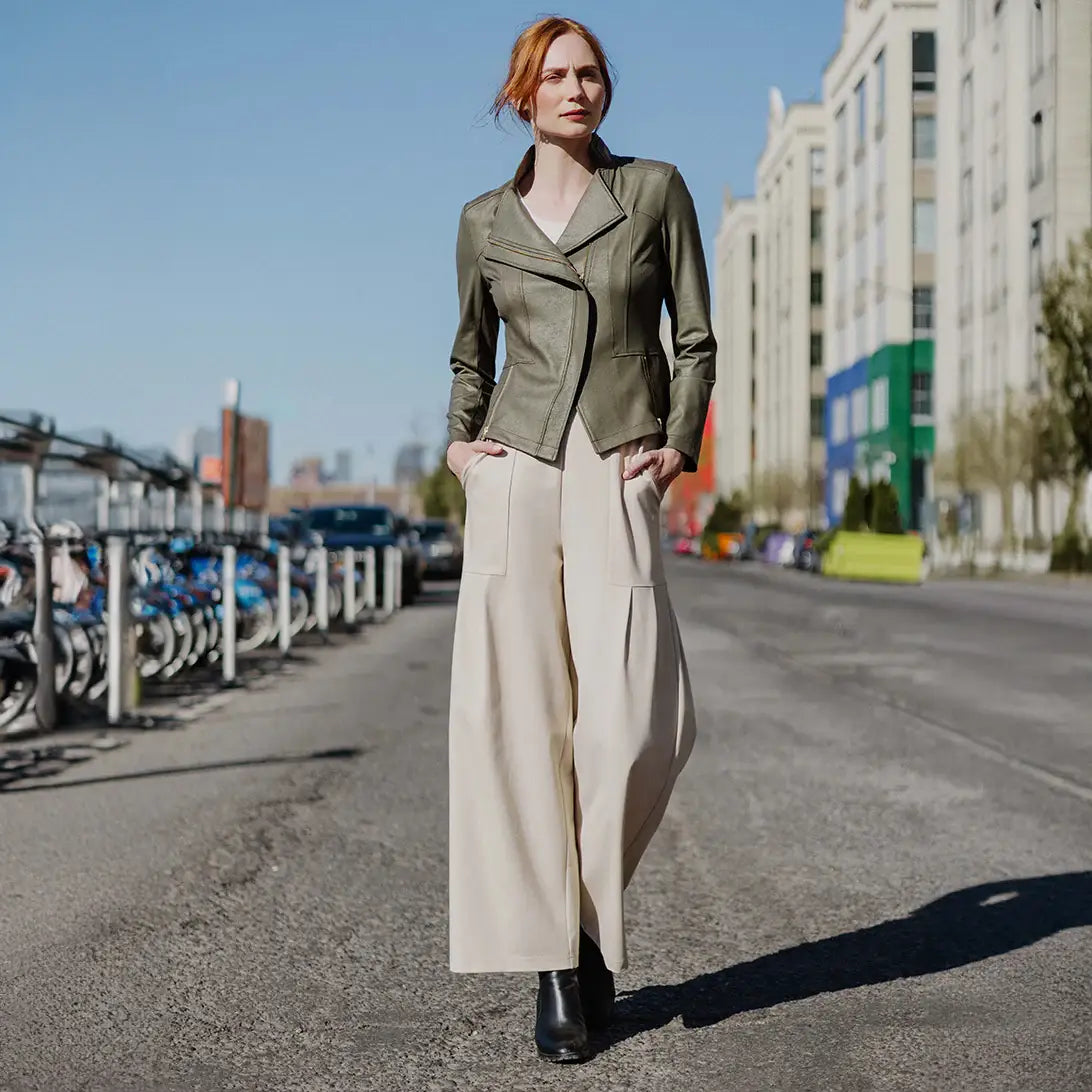Oprah's favorite List! No need to click your heels, this Liquid Leather Signature Jacket is ready to find a home with you! Made from our beautiful signature stretch knit, extremely lightweight soft "lambskin feel" fabric with a soft matte finish. This jacket features a notched lapel with an upright collar, long sleeves, silver asymmetrical zip closure, faux pocket zipper slits as well as complimentary detailed front and backstitching.